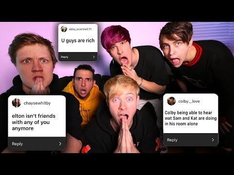 Today Sam wanted all the roommates to answer his fans assumptions so we did. We all sat down as Aaron, Corey, Sam, Jake , me, Navi and then Colby. Sam turned his camera on and said "What's up guys welcome to another video we have all the roommates". Corey looked at everyone and said "Lets tell them".