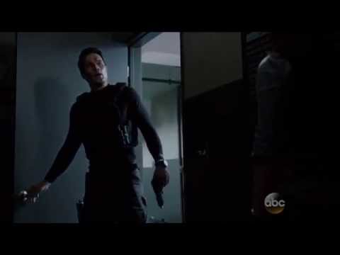 Garrett smirked as he finished putting handcuffs on May while she scowled. The Shield tactical team raised their weapons at her, Coulson and Fitz. Fitz was nervous but managed to avoid breaking down into tears.