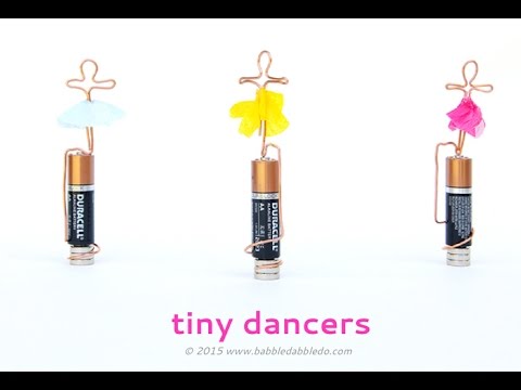 "Now." Sarah continued. "As soon as we connect our wire to these magnets that are sitting on the bottom of our battery..." She spoke as she connected them. "And also attached our dancer top to the top of the battery... the connection will cause a reaction that causes the wire to spin and..." The crowd cheered as the dancer figurine began to twirl on top of the battery.