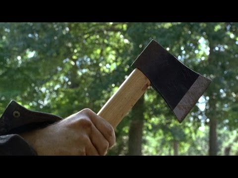 He gets up and leaves the axe there for Rick to grab it...