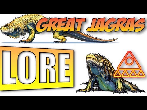 A hunter then made his way through a dense forest into a large clearing, accompanied by calming music. "Unchanged for millions of years, the Ancient Forest keeps many secrets. Early reports by the explorers of the First Fleet hinted at strange monsters, never before seen in the Old World. We now know these reports to be true." Strawfoot explained as he made his way further into the forest. "My name is Strawfoot... And this is the Great Jagras." The host introduced himself, before showing a drawing of a large, yellow iguana-like creature with an impressive mane of dreadlocks, showing it beside a hunter for scale, one of its footprints and different angles of it, some with its stomach noticeably bloated.