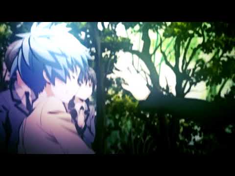 His words hung in the air , unfinished and uncertain . The silence pressed in on them , heavy and oppressive . Behind Nagisa , Karma leaned casually against a tree , his usual smirk replaced by a serious expression . Beside him , [Your Name] mirrored his stance , arms crossed over her chest . The two exchanged glances , their expressions reflecting the weight of Nagisa's words . Stupid boy .