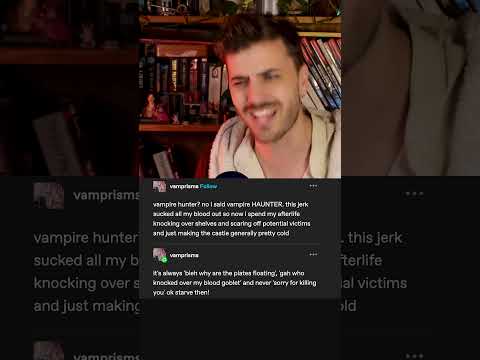 Melody 🎀: Vampire hunter? No I said vampire HAUNTER. This jerk sucked ALL of my blood out so now I spend all my afterlife knocking over shelves and scaring off potential victims and just making the castle generally pretty cold