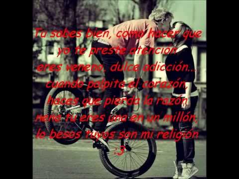 TU SABES BIEN COMO HACER QUE YO TE PRESTE ATENCION TU ERES VENENO DULCE ADICCION CUANDO PALPITA EL CORAZON HACES QUE PIERDA LA RAZON XQ ERES 1 EN UN 1000.000 LOS BESOS TUYOS SON MI RELIGION