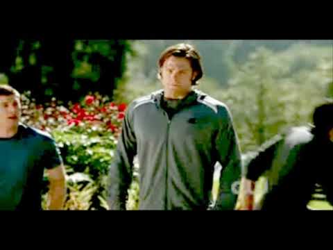 Sam threw a football to Dean and Dean caught it, threw it on the ground and both fell to the ground backwards. Subtitles 'Guest Starring Richard Speight Jr. As The Trickster'.