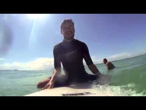 Louis und Liam lieben es zu surfen.