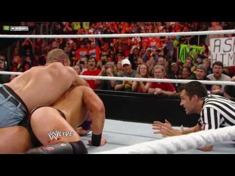 Then Orton comes out and he got a standing ovation. The match starts up, and Randy gets the upper hand and Gabriel rolls out of the ring. Randy goes out and throws him back in and looks at both Otunga and Slater. Otunga goes to hit Randy but misses and Randy kicks him instead. The ref comes out and throws them out of ringside because Otunga interfered.