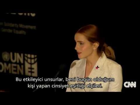 "6 ay önce BM kadınları için iyi niyyet elçisi olarak atandım ve feminizm hakkında konuştukça farkettim ki,kadın hakları için savaşmak sık sık erkek düşmanlığıyla denk geliyor.Eğer kesin olarak bildiğim tek bir şey varsa,o da bunun bitmesi gerektiğidir.Hatırlatmak isterim,feminizmin tanımı erkek ve kadınların eşit hak ve fırsatlara sahip olması inancıdır.Çinsiyetlerin politik,ekonomik,sosyal eşitliğinin teorisidir.