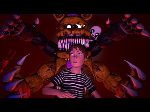 As they sang, Sam leaned out through the door Phantom came out of wearing a Bonnie tux with rabbit ears; Tucker leaned in through the right door, a yellow tux on and a tattered bib around his neck as he held a Nightmarish cupcake in his hand. Finally, Mikey was wearing a reddish brown Foxy tux while Fire was in her Mangle suit; they peeked out of the closet, both sporting hooks on there left hands. All of them smirked cruelly and all of them had blood red glowing eyes.