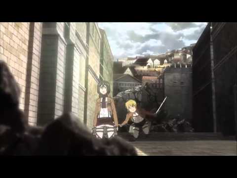 C'est quand Mikasa perds tout espoir suite à « la mort d'Eren » et veut se laisser bouffer par le titan qui arrive et que SOUDAINEMENT un titan ultra bien foutu et touuuuut (Eren quoi) vient la sauvé.