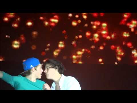 We have been on this stage for what feels like years. All the boys look like they are having the time of their life's. Well all expect Niall. He keeps looking at me with a worried expression. I don't know why. All I want to do is run of stage and cry, never coming back. Right when I saw Niall backstage I saw a love bite on his neck. It wasn't there before. So I knew it was from that girl. Why couldn't it have been I that had given that to him? Right now we are singing "What makes you Beautiful" and we're about to get into formation for my solo in the song. I start to walk to the middle of the stage we're the rest of the boys are. But I somehow trip over a wire and fall on Niall. But I didn't just fall on him. When I fell he fell to the ground as well. It took me a while to figure out what happened. When I did I didn't know what to do. I was kissing him.