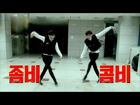 "Hyung, these zombies aren't as strong as I thought they would be!" Kwang Soo yelled happily, after the two of them had knocked down all the zombies.