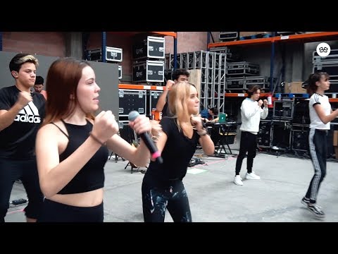 Narra Tn:Me desperte por mi alarma y me meti a bañar eran las 7:00 de la mañana era el primer dia que no asistia a la escuela Xime tampoco asistio ya que va hacer una de las invitadas de este neon tour. Baje y ya casi todos estaban desayunando solo faltaba yo y Emi,justo cuando iba agarrar un hotcake Emiliano agarro el mismo y asi estuvimos peleando como 10 minutos hasta que Emi lo solto y yo me lo empece a comer. Terminamos de desayunar y sono un clatzon era la camioneta de bobo que nos fue a buscar para ir a ensayar para el neon tour. Llegamos y estaban los de bobo para grabar un video (multimedia) (imaginen que son Jelly y que es 10 de noviembre) . Ensayamos a full y hubo un descanso de 1 hora asi que convenci a Lito y a Pau para que me acompañaran por un starbucks y ahi vamos los tres mosqueteros al Starbucks y ya cuando llegamos a la sala de ensayos me tome una foto con Lito y Pau 👤 @asies___