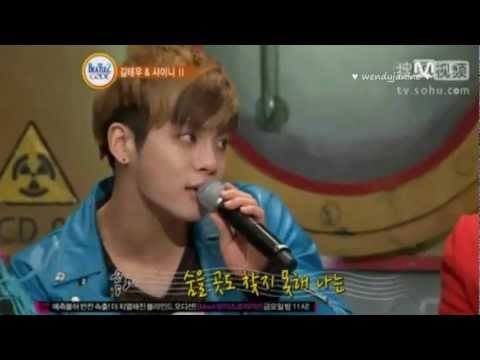 On the other side,Jonghyun too was nervous. "Hyung.. Can you sit down? Your making us dizzy?",Taemin said to him.
