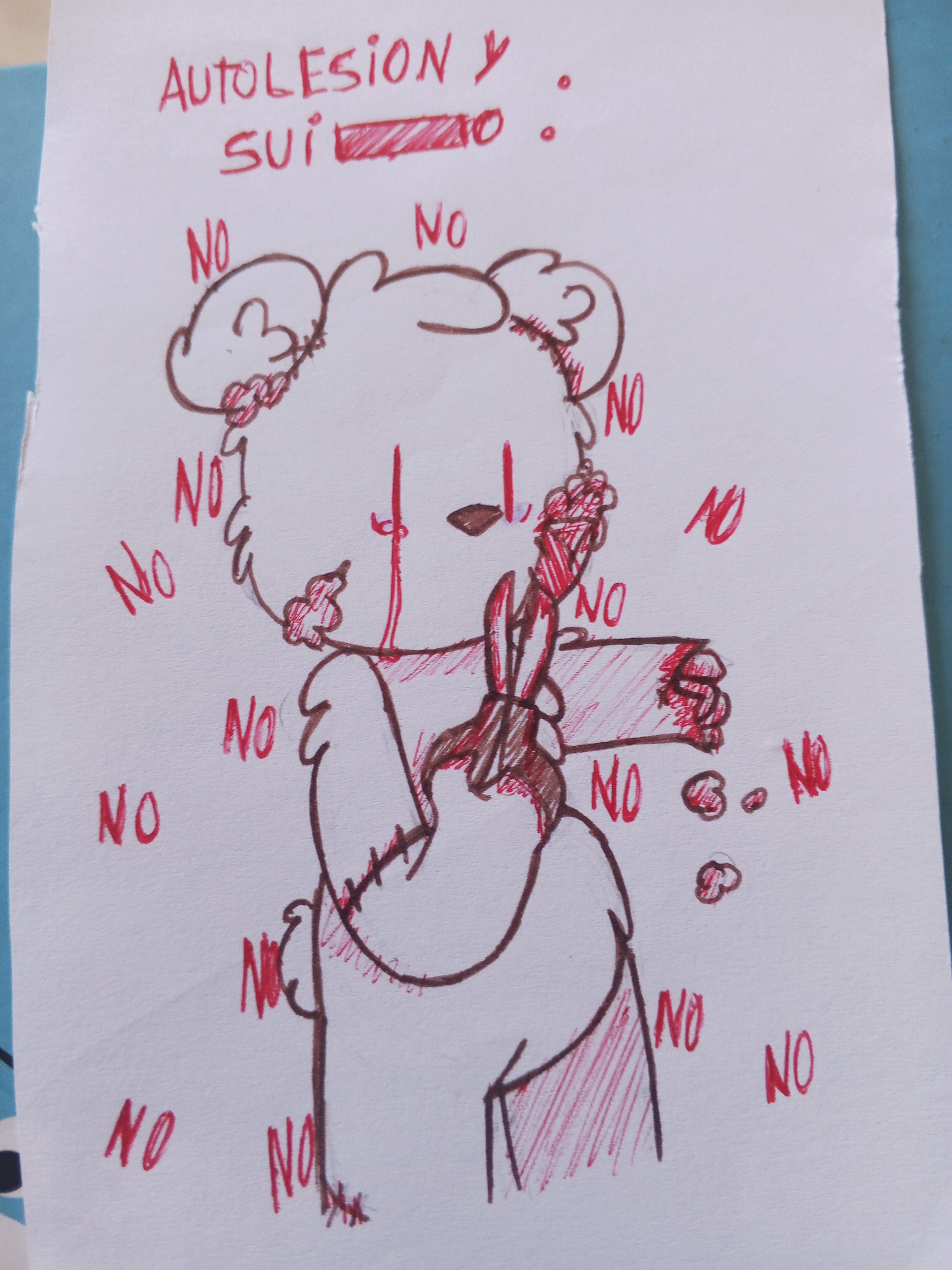 @Hey_its-PaperHat aaa el oso de felpa, como se llamaba xd? Iba a decir que con una tijera no se puede cortar un brazo pero me acorde de que es un peluche